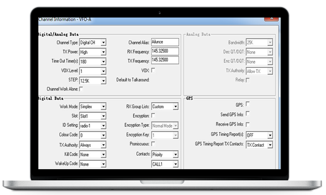 True VFO Mode allows you do almost all settings without PC. Edit frequency, CC, Ts, Contacts, Rx Group List, Offset, Save Channel, Delete Channel etc. Dual Band DMR Radio, Analog and Digital Combined. Compatible with Motorola Tier Ⅰ&Ⅱ.