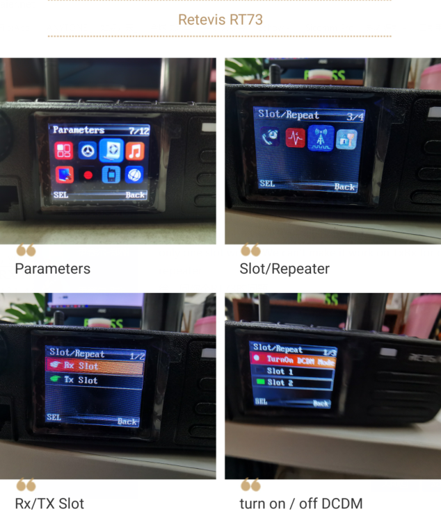 So when in working in simplex mode, and select time 1 or 2, if the destination radio does not turn on DCDM, you also no RX audio on RT73. So if use DCDM on digital radio, should make sure the communication radios both have the DCDM function.