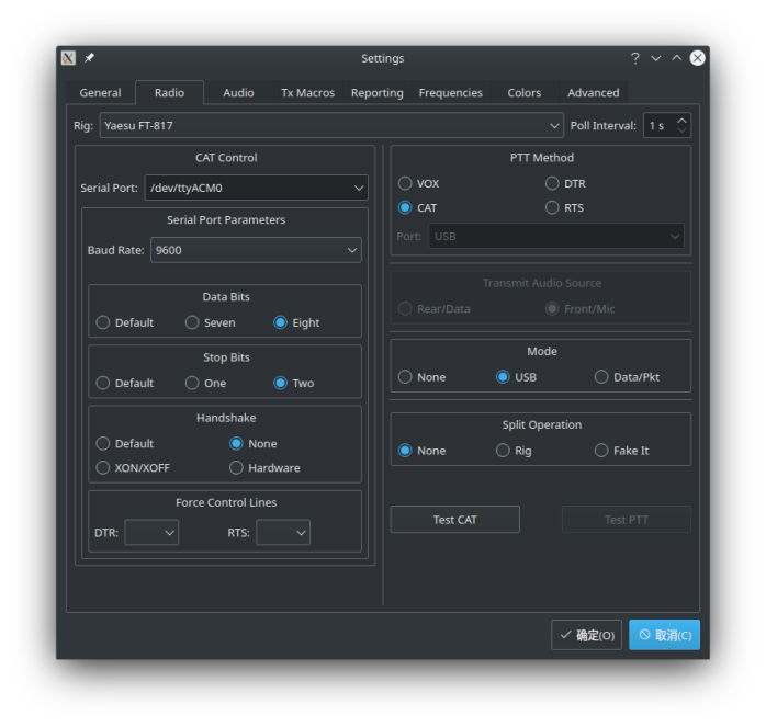 If the dialout group setting is normal and has been restarted, click Test CAT and no warning will appear. hamlib: IO Error; otherwise, check if step 4 is complete.