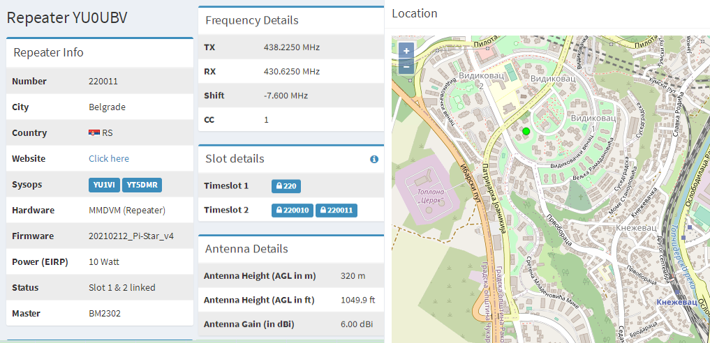 We can see this repeater information as below, and in the location map you can check where the repeater is, then you can confirm if it is in your communication range.