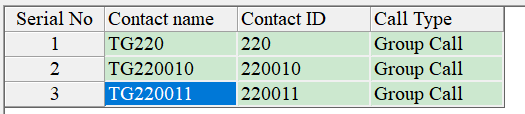 2. Creat group contacts :TG220, TG220010, TG220011 in the contact list.