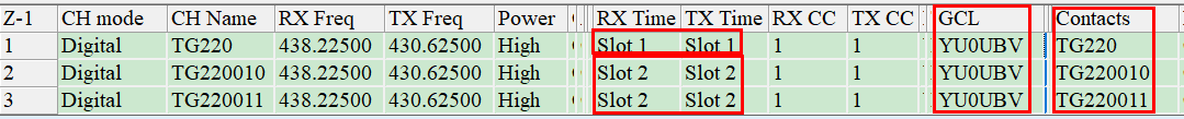 3. Creat 3 digital channels for this repeater as below picture show. here please make sure select the correct time slot and color code. You can create a RxGroupList for these 3 groups.