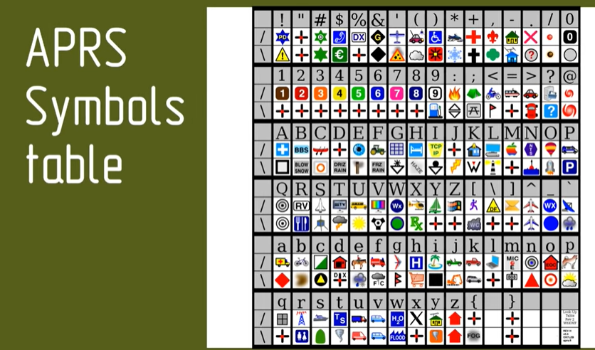 APRS Symbol Table, and APRS Map Icon are listed in below table.