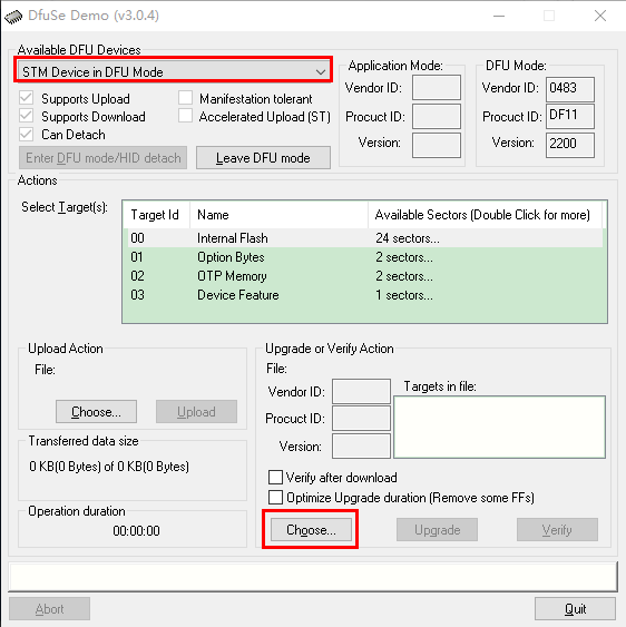 1. Install "DfuSe_Demo_V3.0.4_Setup" application firstly.