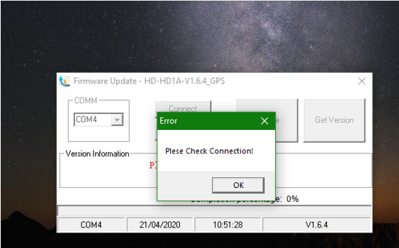 And if you program the firmware, but do not enter DFU mode, it will give you fail dialog box like below: