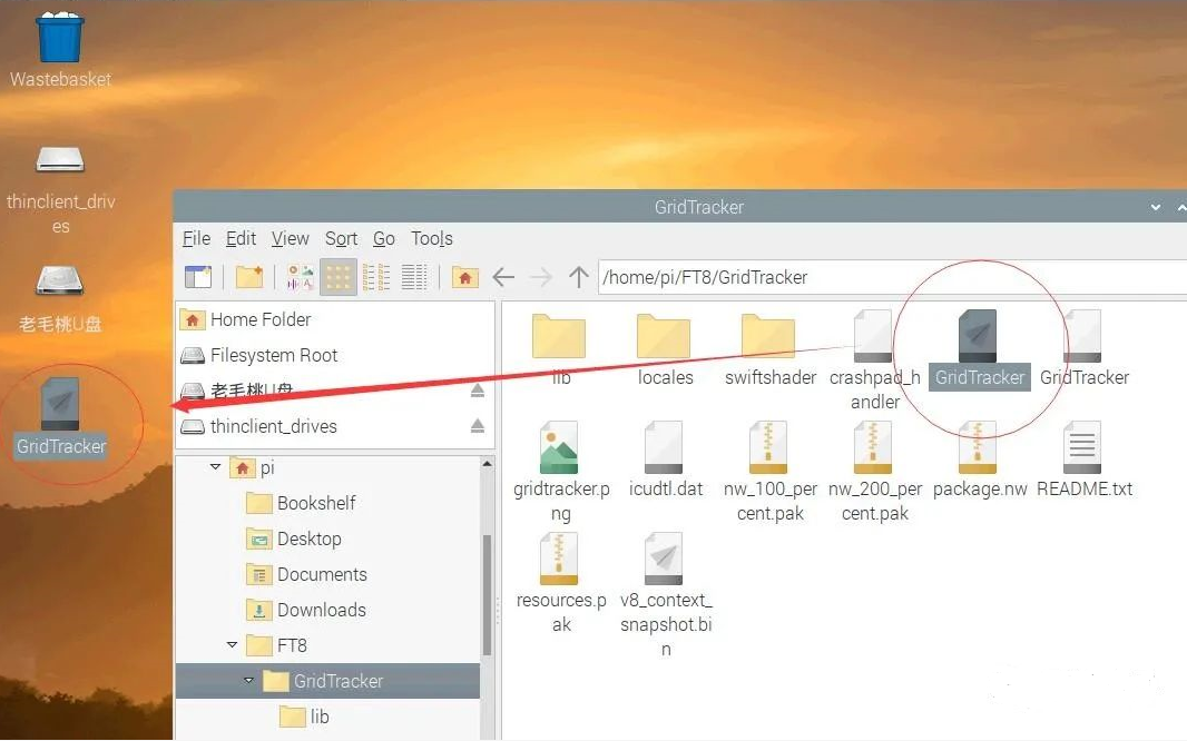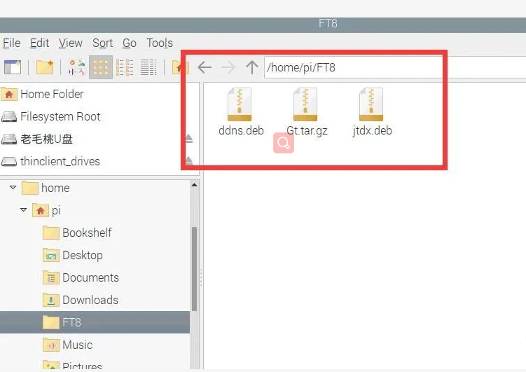Then copy the software package provided in this article to the Raspberry Pi with a USB flash drive, but be sure to pay attention to the path.