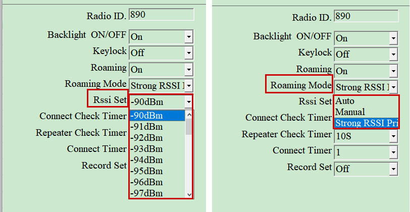 When the radio on Auto roaming scan and scanned the largest RSSI value in the member of [Scan/Roam list], it will lock to the current member channel with the largest RSSI value and stop the strong signal automatic roaming. Then radio will initiate Repeater Check Timer for handshake confirmation with the current channel repeater based on your preset connect times. If a handshake is not confirmed with the repeater within preset connect times, the radio will restart the strong signal automatic roaming search for a repeater with the largest RSSI in the member list.