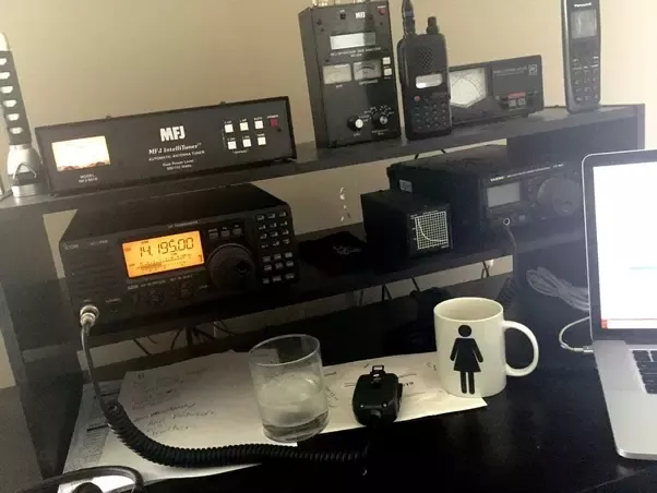 And some frequencies are reserved for hobbyists, or amateurs, or “hams”. On these frequencies, radio amateurs who have passed a government exam and obtained a license can talk to other amateurs. Only talk, or morse code, or some other analog or digital modes are allowed. And only non commercial use. Sometimes,musing some frequencies, you talk to other amateurs locally, in the same town, say; and sometimes, using “shortwave” or “HF”, you can talk to distant amateurs. Sometimes even half way across the world.