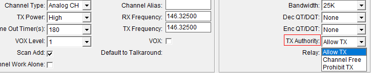 Busy Channel Lock-out feature often abbreviated to BCL on two way radios. But it depends on the different radios, on some radio it says BCL, this is also commonly referred to as TX Inhibit on some other radios. For example, on Retevis RB17P, it says "Busy Lock". but on Ailunce HD1 it says" TX Authority".