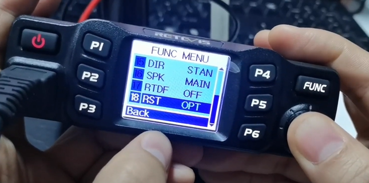Long press the "FUNC" enter the menu list, then switch the rotary knob to choose the No 18 function,