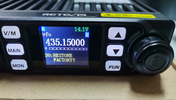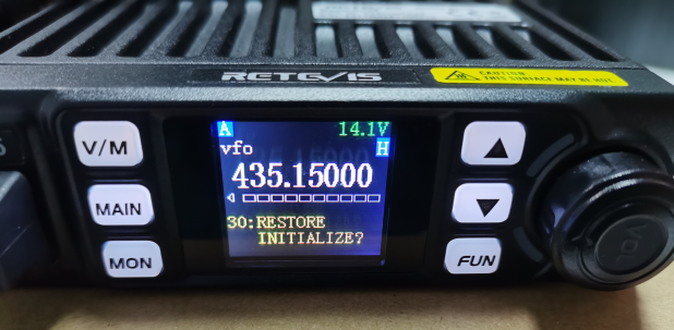 On Retevis RA25, if it seems to be malfunctioning because of wrong operation or setup, you can do a factory restore or initialize on the mobile radio directly.