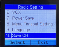 After tuning to your desired frequency, press Menu again, select Radio, then select "Save Channel".
