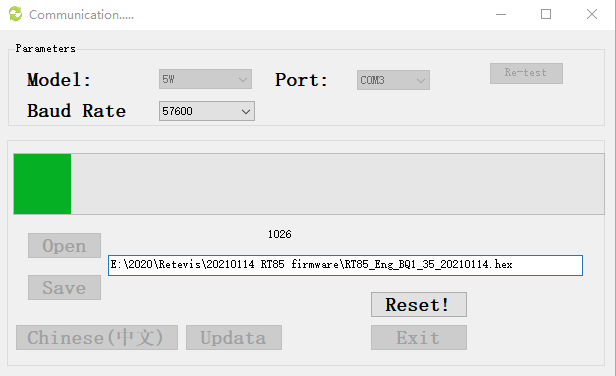 4. Open the "RT85_Eng_BQ1_35_20210114.hex" file. Then click "Update".