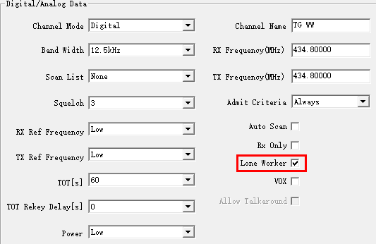 First, Enable the "lone worker" function in the software for that channel which you want to activate the lone worker alarm.